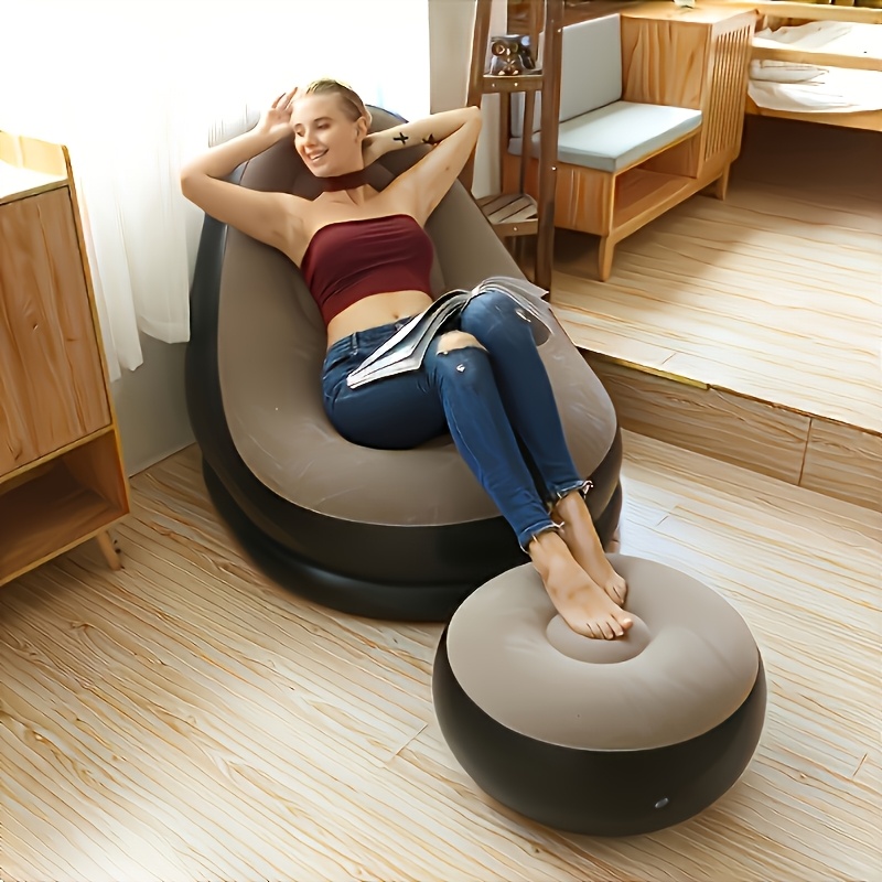 Foldable Large Inflatable Sofa with Ottoman, Indoor\u002FOutdoor Use - Easy Storage, Multi-functional, Flocked Footrest Home Lounge Chair - Portable Inflatable Sofa for Camping and Picnics, Compact and Space-Saving, Great Holiday Gift